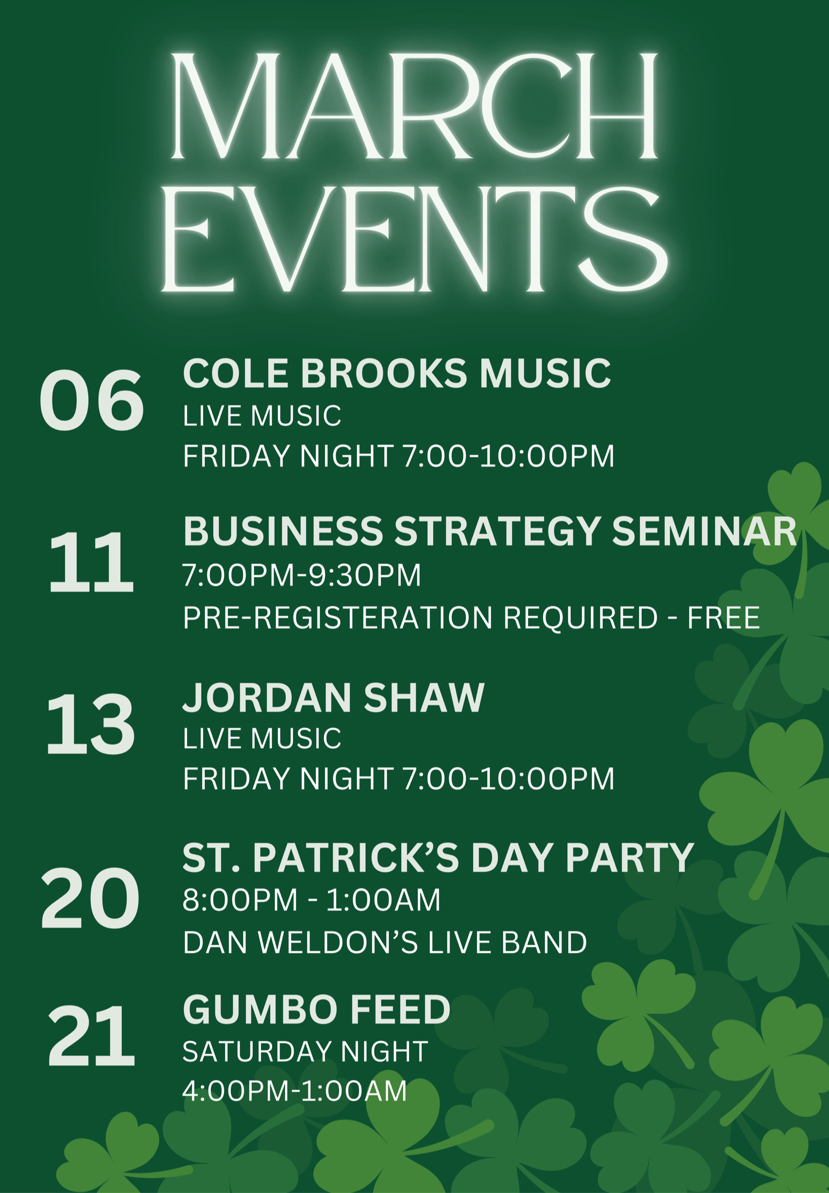 Upcoming events: To pre-register for our Free Business Strategy Seminar on March 11th please fill out form below